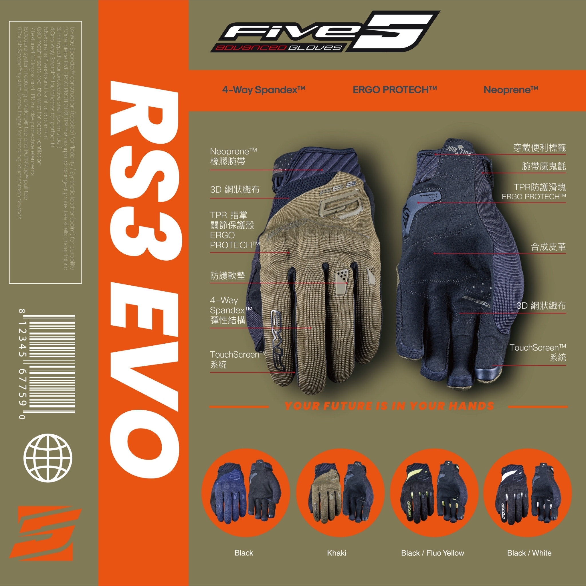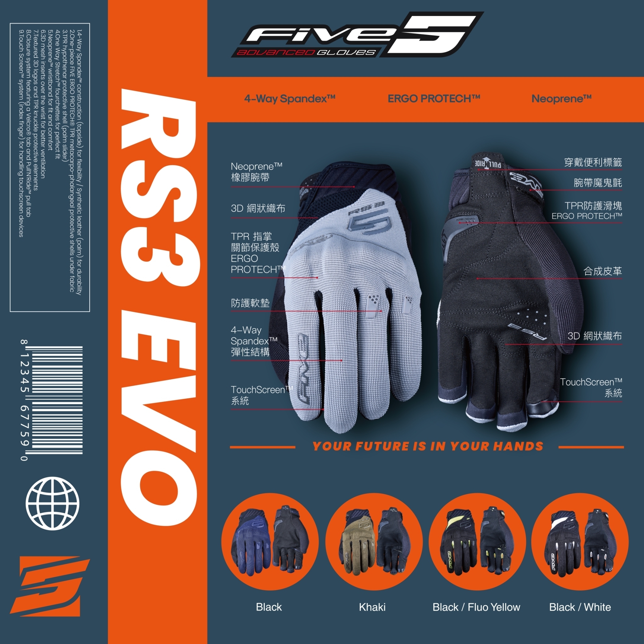 【Five5手套】RS3 EVO 多功能城市防護短手套