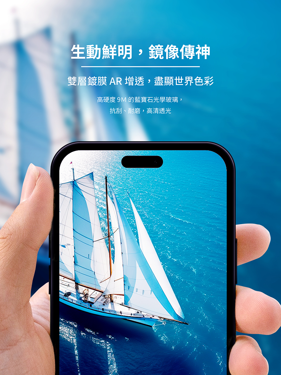 鏡片採用莫氏硬度 9M 高耐磨的藍寶石光學玻璃,完美傳遞原機原鏡的成像畫質。