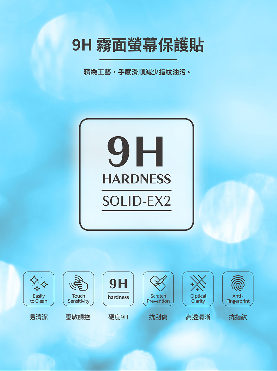 ● SOLID-EX2 強化玻璃具備 9H 硬度,抗刮耐磨耗