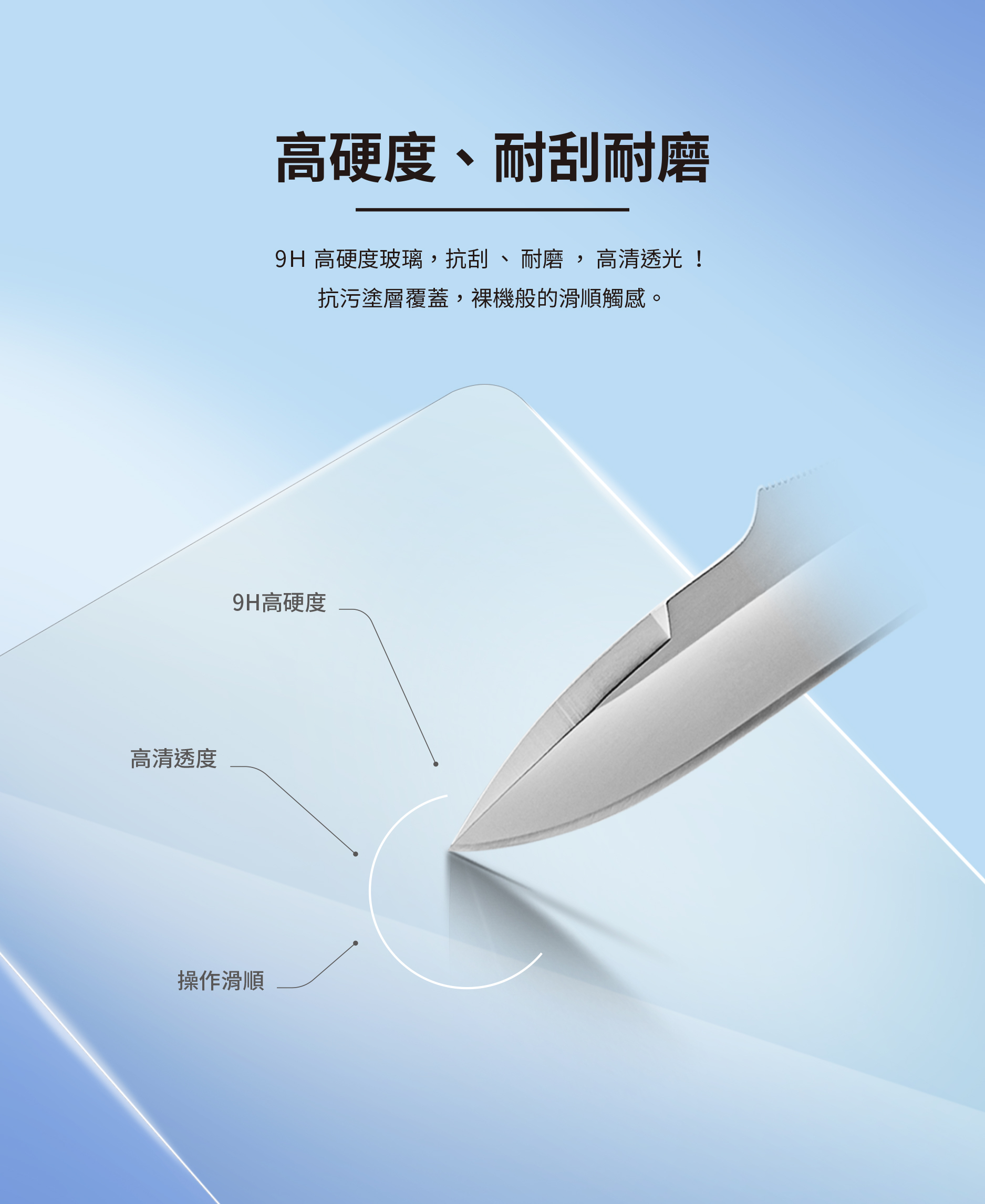 ● SOLID-EX2 強化玻璃具備 9H 硬度,抗刮耐磨耗