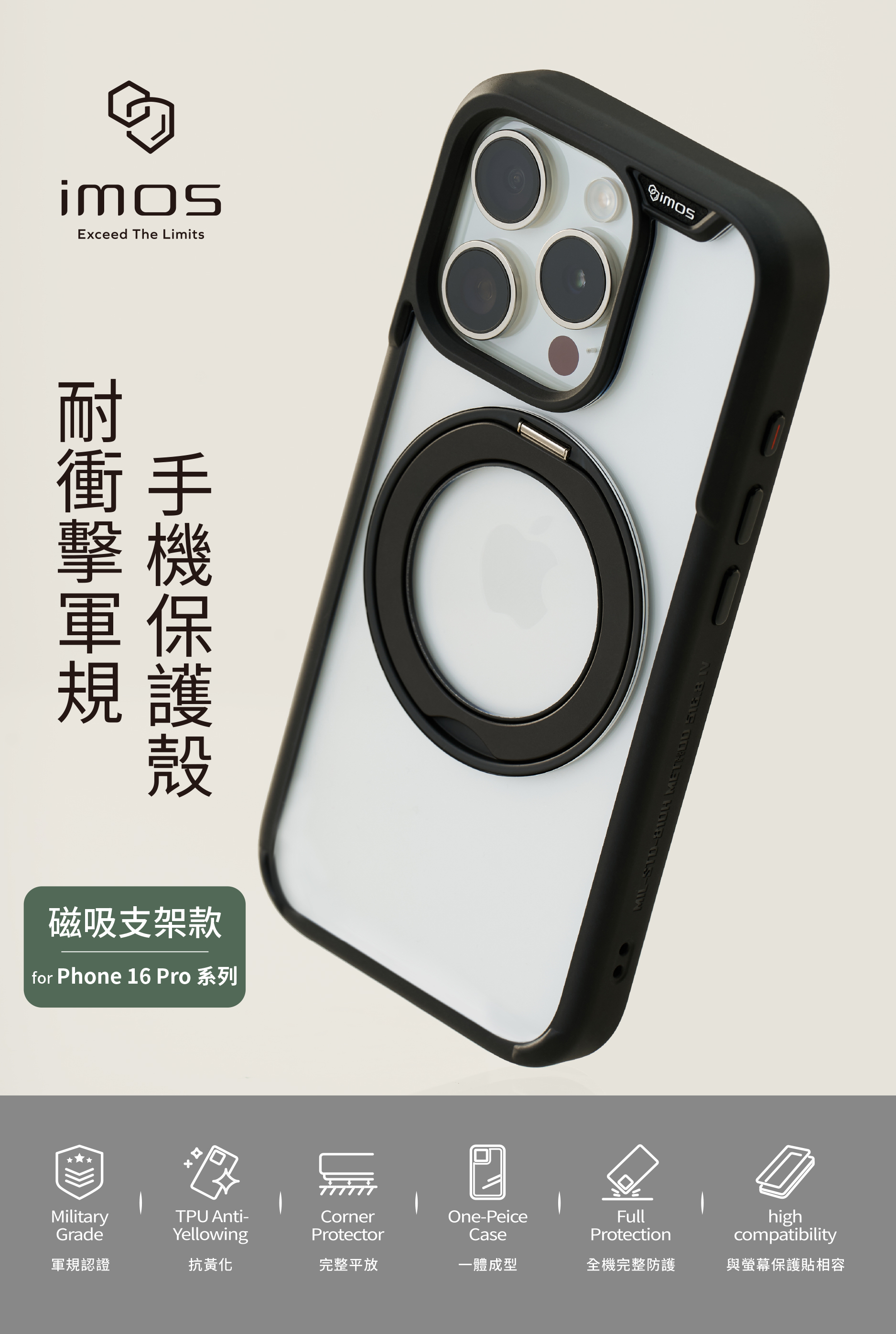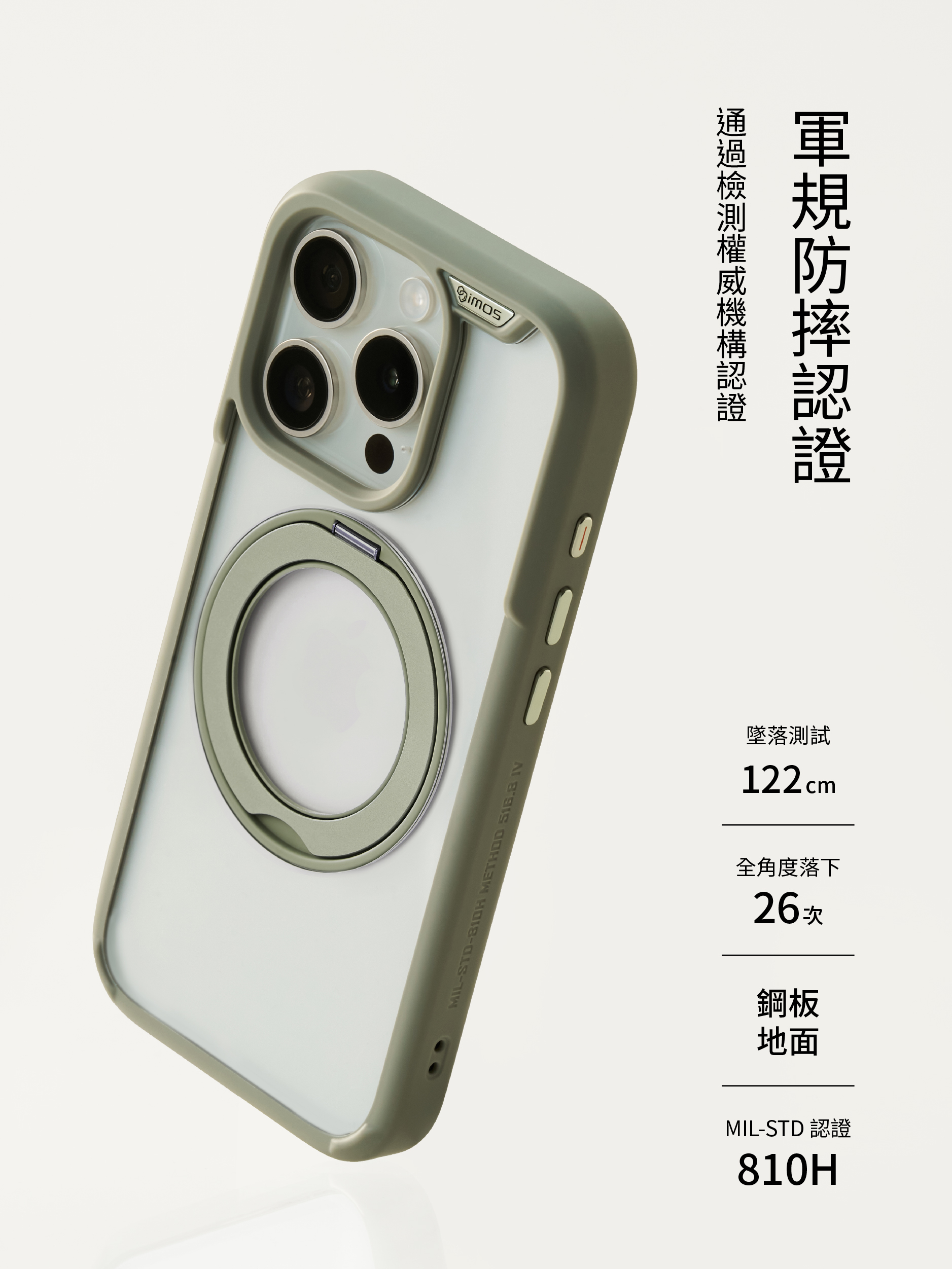 TPU 熱塑性聚氨酯彈性體橡膠、PC聚碳酸酯經由最佳化比例製程一體成型,通過軍規防摔認證 MIL-STD-810H(約 122 公分高度共測試 26 個不同接觸點)測試,按鍵採用獨立金屬精雕特製,回饋力道有感滑順。邊框設計凸出保護,放置於桌上時,即使正面貼上玻璃保護貼,皆保持在懸空狀態,不會直接接觸桌面。